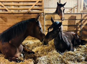 Die Fohlen wachsen in ruhiger Umgebung auf – mit viel Bewegung, Sozialkontakt und hochwertigem Futter. Bioheu und Hafer stammen aus eigener Erzeugung.
